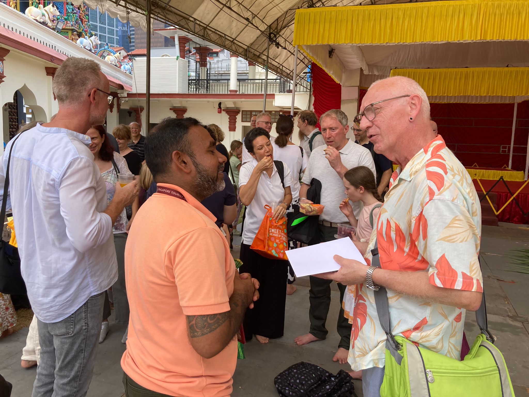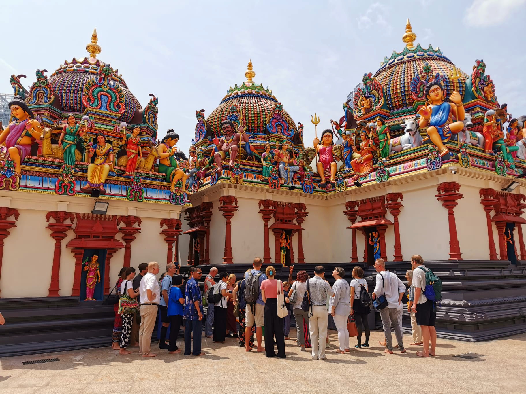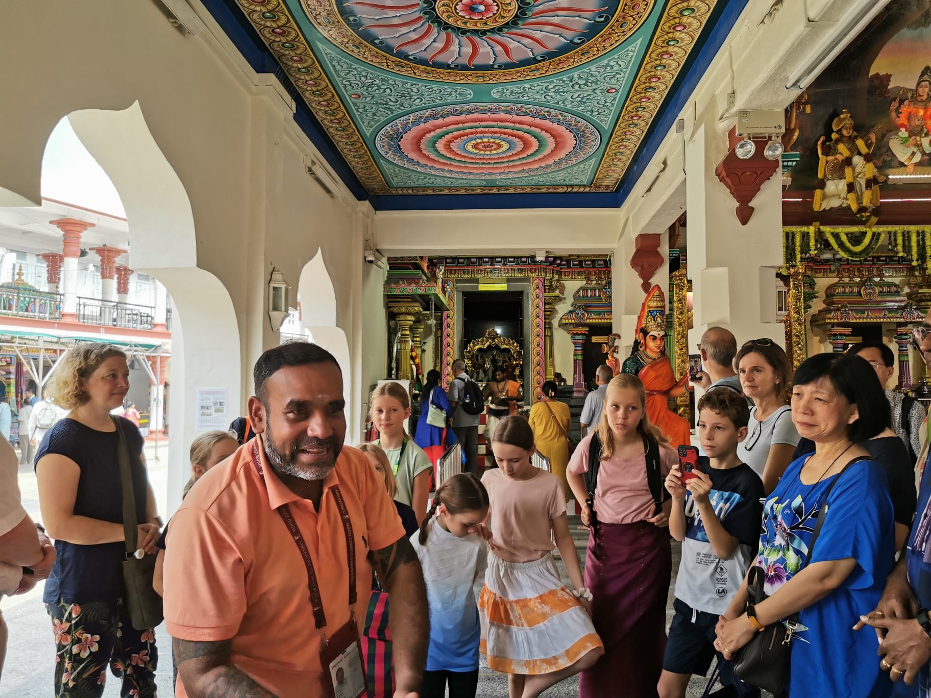Am 2. September 2023 konnten wir den ältesten Hindu-Tempel Singapurs, Sri Mariamman, an der South Bridge Road in Chinatown besuchen. Erfreulicherweise durften wir dieses Mal auch sechs Mitglieder der deutschsprachigen evangelischen Gemeinde hier in Singapur als Teil unserer Gruppe begrüssen. Unser Guide, Mr. Ravin Raj, hat es verstanden, uns auf sehr lebendige Art und Weise mit den wichtigsten Aspekten der in diesem Tempel praktizierten Hindu-Traditionen vertraut zu machen. Besonders schön war dabei, dass wir die Gebets- und Opferrituale direkt miterleben durften, was den Besuch dieses Mal besonders eindrücklich gemacht hat. Weitere Infos zum Tempel gibt es auf dessen Website.